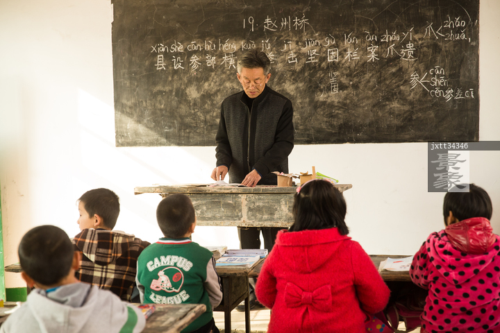 图片标题: 乡村男教师和小学生在教室里