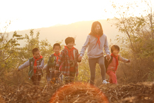 图片标题: 乡村女教师和学生户外活动