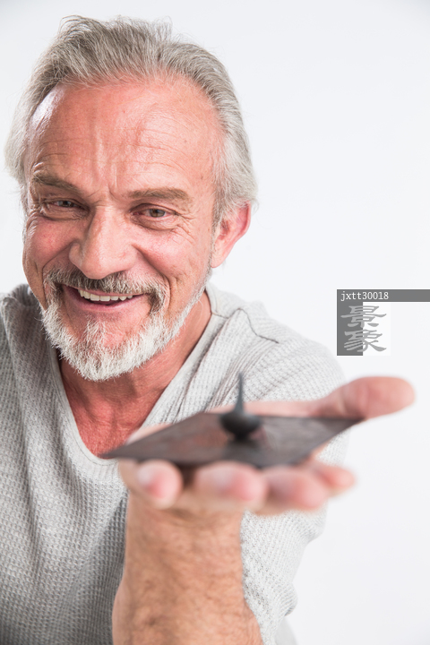 图片标题: 老年男人和指南针