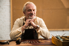 图片标题: 老年男人拿着钻石戒指