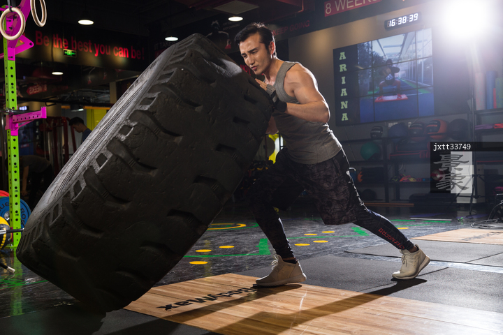 图片标题: 青年男人在健身房