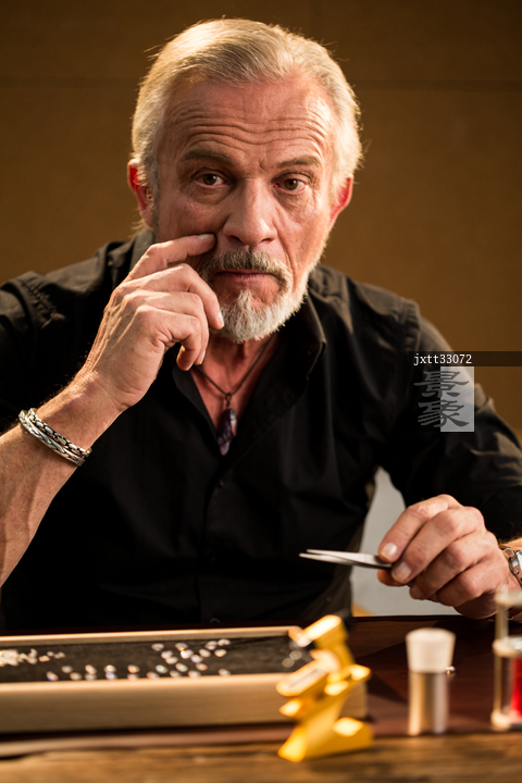 图片标题: 老年男人制作钻石戒指