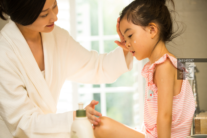 图片标题: 小女孩和妈妈在卫生间里洗漱