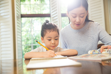 图片标题: 爸爸教女儿使用照相机