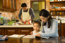 图片标题: 爸爸辅导女儿做作业