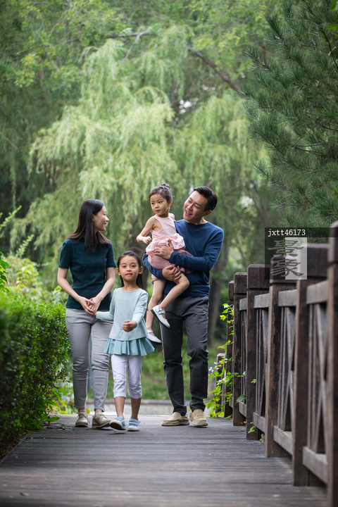 图片标题: 幸福家庭在户外散步