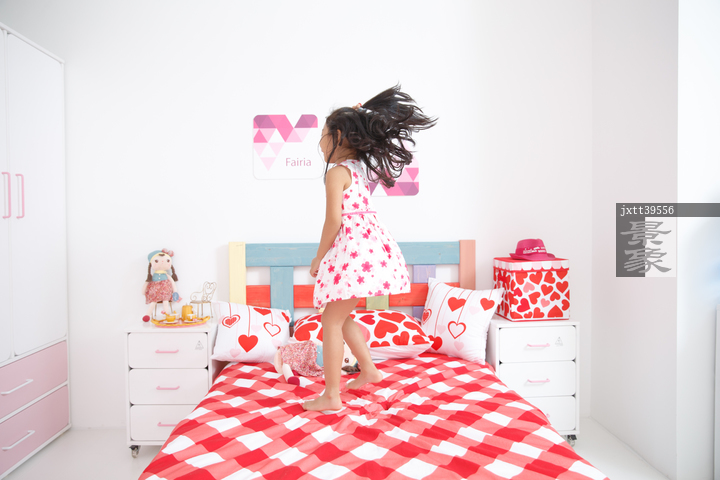 图片标题: 可爱的小女孩在卧室玩耍