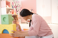 图片标题: 可爱的小女孩在卧室玩耍