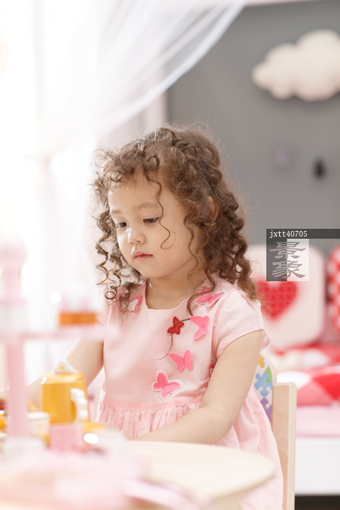 图片标题: 可爱的小女孩在卧室玩耍