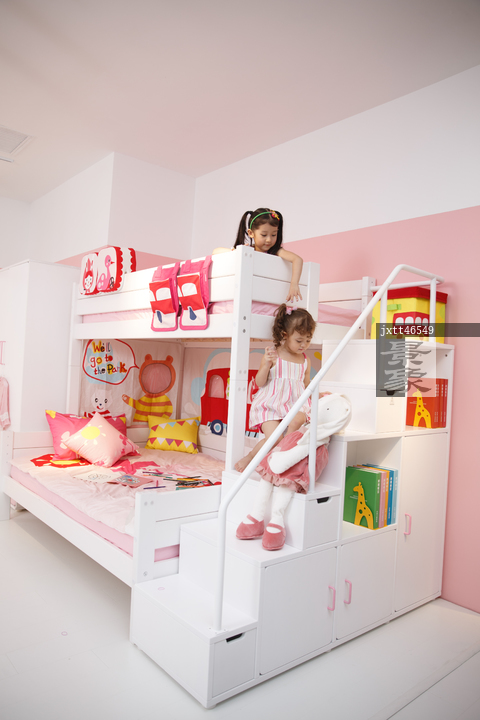 图片标题: 可爱的小女孩在卧室玩耍