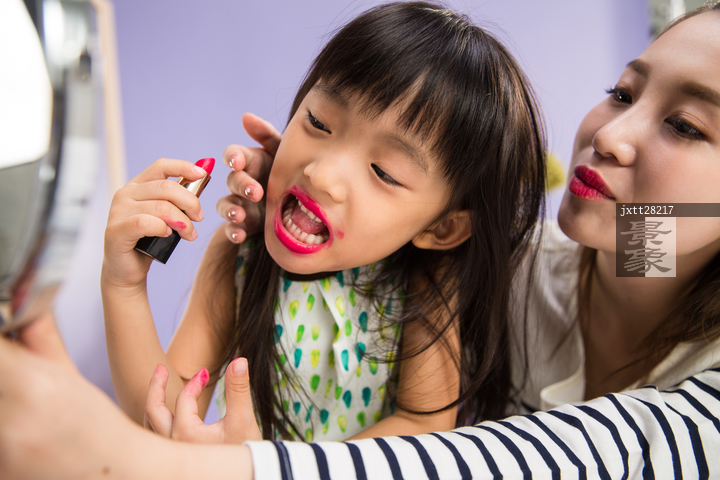 图片标题: 妈妈与女儿在化妆
