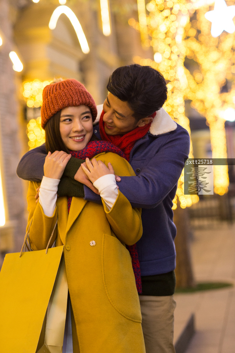 图片标题: 快乐情侣逛街购物