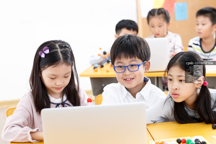 图片标题: 小学生在教室里使用电脑