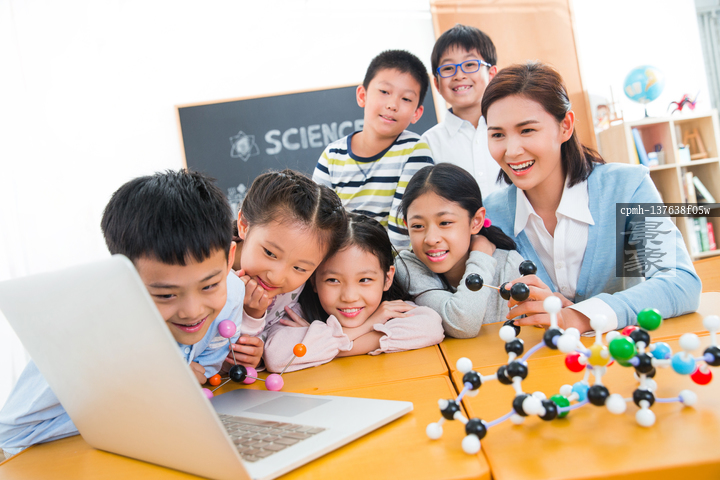 图片标题: 女教师和小学生在教室里使用电脑