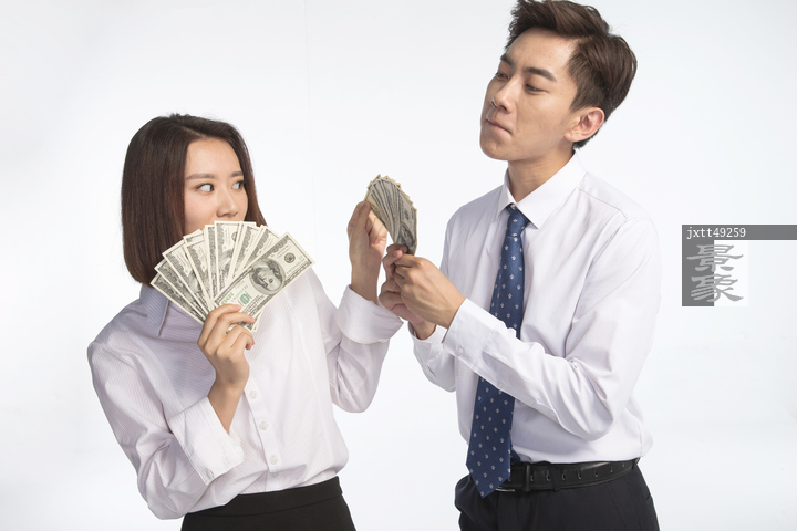 图片标题: 商务青年男女拿着美元