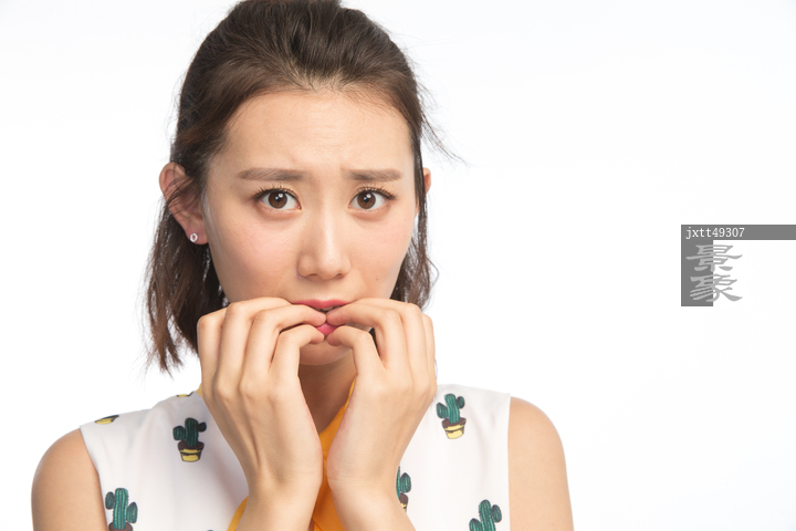 图片标题: 面部表情震惊的青年女人