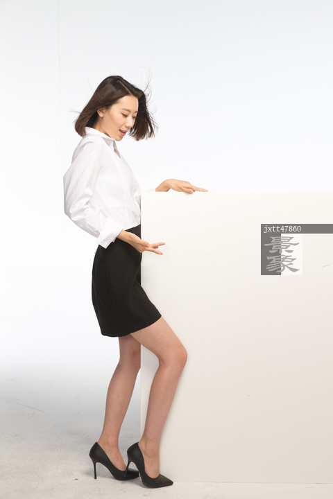 图片标题: 商务青年女人和白板