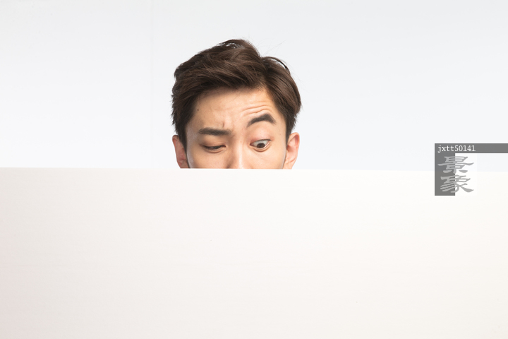 图片标题: 青年男人通过白板窥视