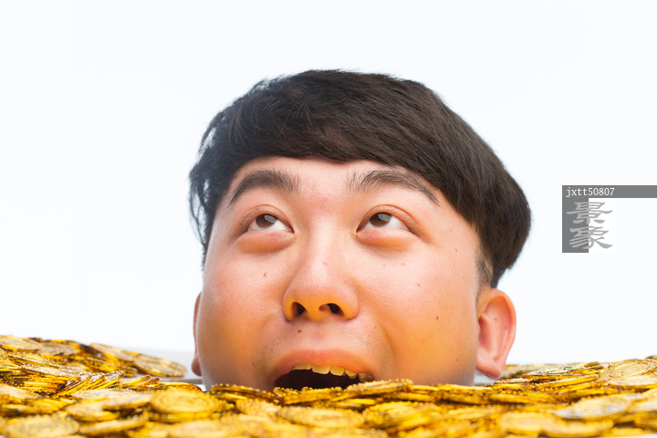 图片标题: 青年男人和金币