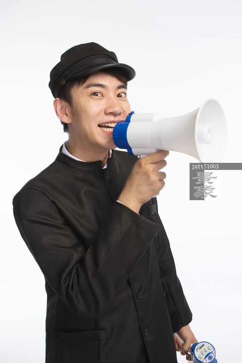 图片标题: 复古青年男人使用扩音器