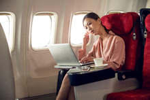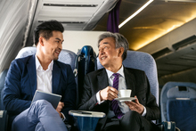 图片标题: 空姐和乘客在飞机上