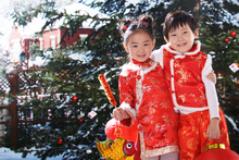 图片标题: 东方女人过年贴福字