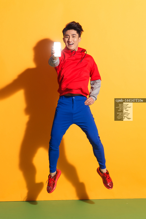 图片标题: 拿着手机的青年男人