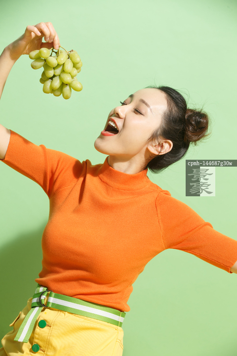 图片标题: 青年女人吃葡萄
