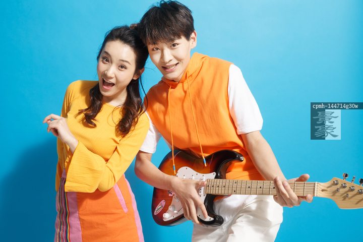 图片标题: 青年情侣弹吉他