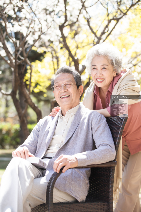 图片标题: 老年夫妇在阳光下读书