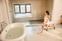 图片标题: 青年女人拉开窗帘往外看