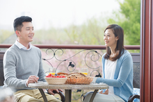 图片标题: 父亲和儿子在阳台使用天文望远镜