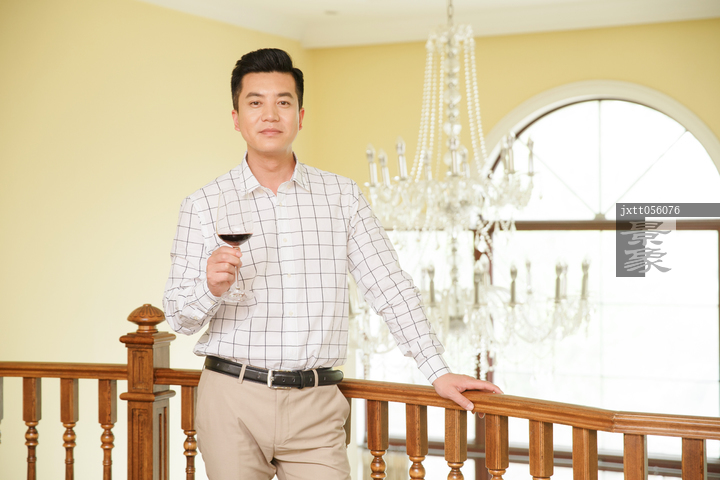 图片标题: 中年男人拿着高脚杯