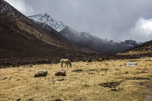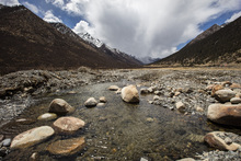 图片标题: 四川省 壤塘县 香拉东吉圣山 山路 雪山 蓝天
