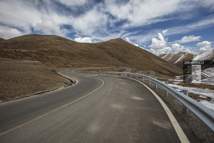 图片标题: 四川省 壤塘县 德勒山 山路 雪山 蓝天