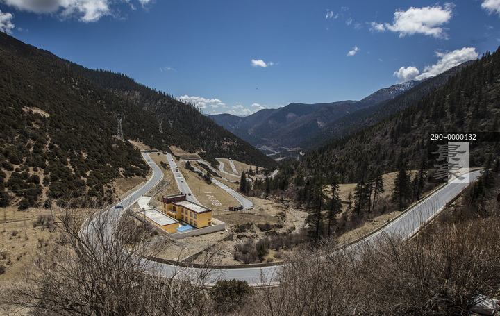 图片标题: 四川 甘孜藏族自治州 理塘县 卡子拉山 蓝天 白云 山路