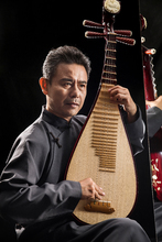 图片标题: 男艺术家在弹琵琶