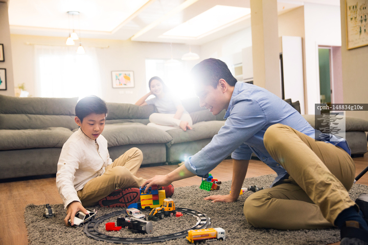 图片标题: 幸福的一家三口在客厅里