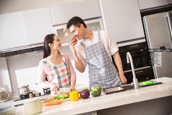 图片标题: 年轻夫妇在厨房