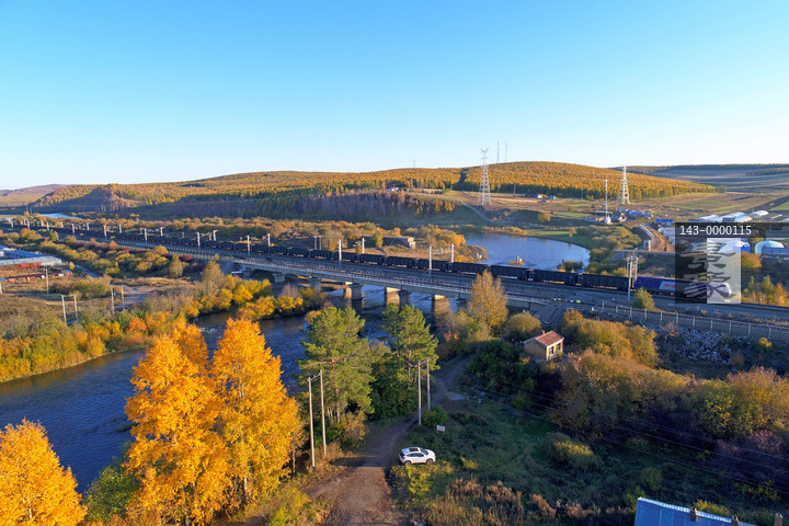 图片标题: 货运列车行驶在铁路大桥上