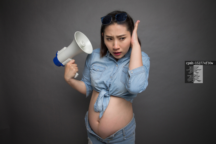 图片标题:     穿着时尚的孕妇拿着扩音器