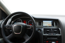 图片标题: 司机在汽车内手拿导航仪
