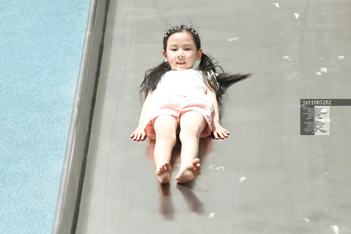 图片标题: 小女孩在户外玩滑梯