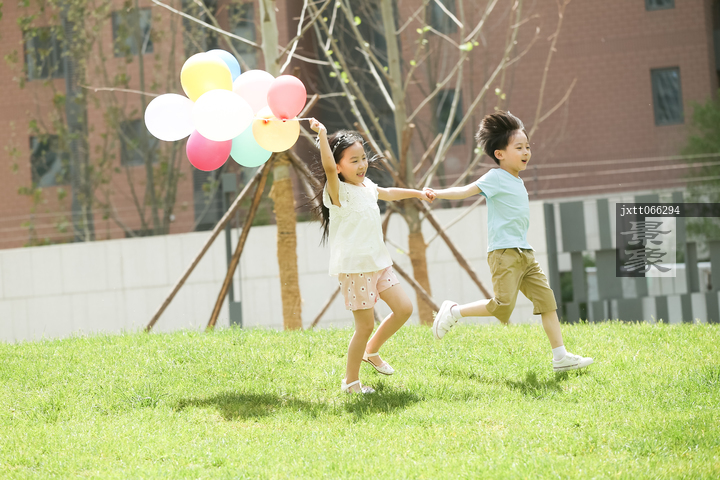 图片标题: 快乐儿童在草地上玩耍