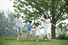 图片标题: 快乐家庭在草地上奔跑