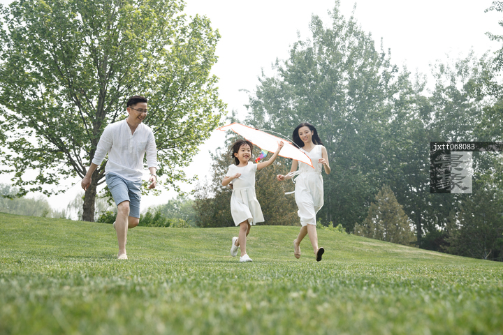 图片标题: 一家三口在草地上放风筝