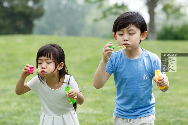 图片标题: 可爱的男孩女孩在户外玩耍