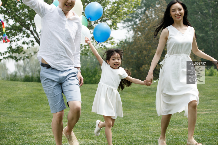 图片标题: 一家三口在草地上玩耍