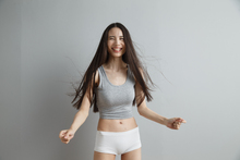 图片标题: 青年女人测量腰围