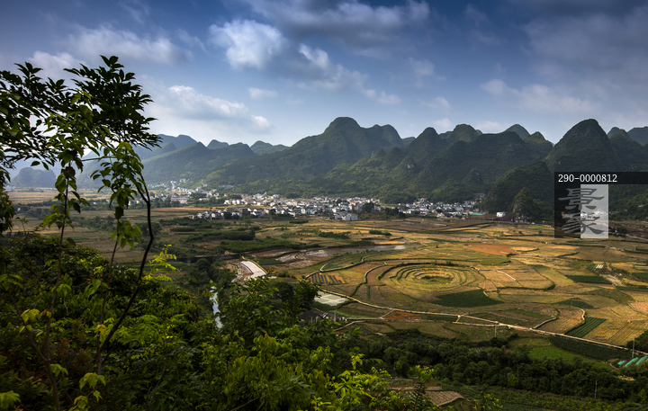 图片标题: 贵州省,兴义,万峰林,山峦叠翠,稻田,古民居